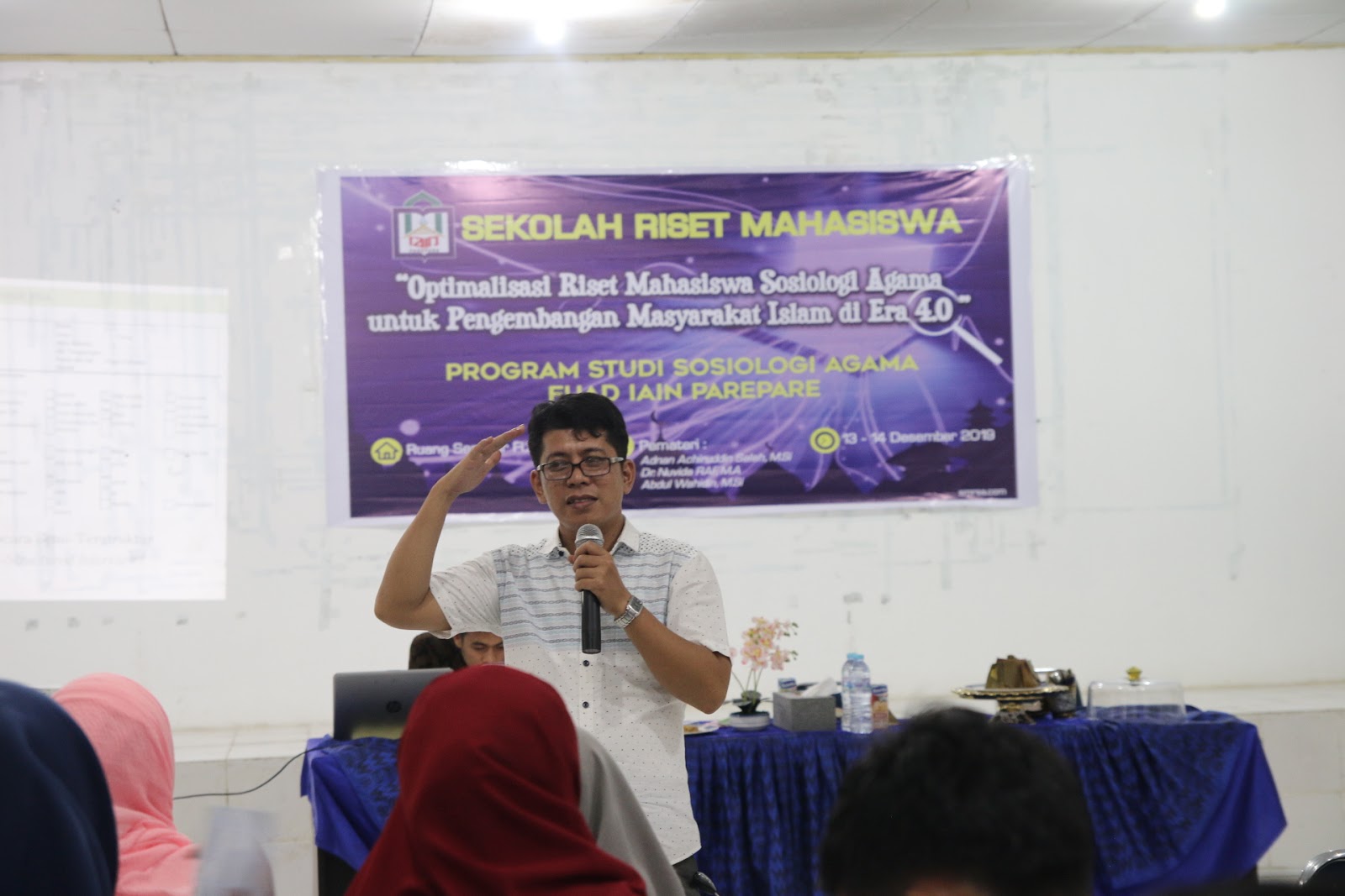 HUMAS IAIN Parepare—-Program Studi Sosiologi Agama Fakultas Ushuluddin, Adab dan Dakwah IAIN Parepare mengadakan Sekolah Riset Mahasiswa Sosiologi Agama (SRM-SA). Kegiatan yang berlangsung selama 2 hari ini, mulai tanggal 13 sampai 14 Desember 2019 dengan mengangkat tema optimalisasi riset mahasiswa Sosiologi Agama untuk pengembangan masyarakat Islam di era 4.0.