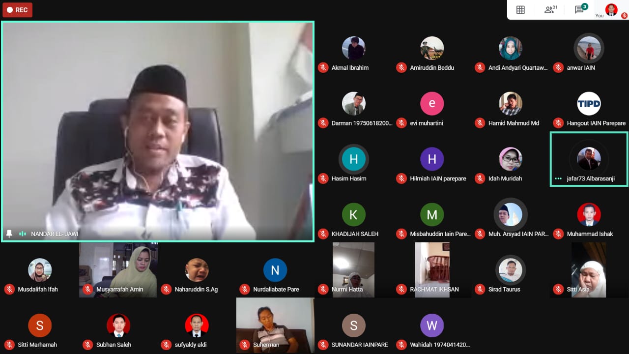 Humas IAIN Parepare — Tausyiah Ramadhan yang dibawakan secara bergantian oleh tenaga kependidikan IAIN Parepare sudah menjadi program tambahan selama WFH berlangsung. Program tausyiah yang dilaksanakan pada saat meeting online ini selalu diikuti oleh Kepala Biro AUAK, Hj. Musarrafah Amin selaku pejabat pembina ASN dalam lingkup IAIN Parepare sekaligus memimpin dan memberikan arahan pada setiap acara meeting tersebut.